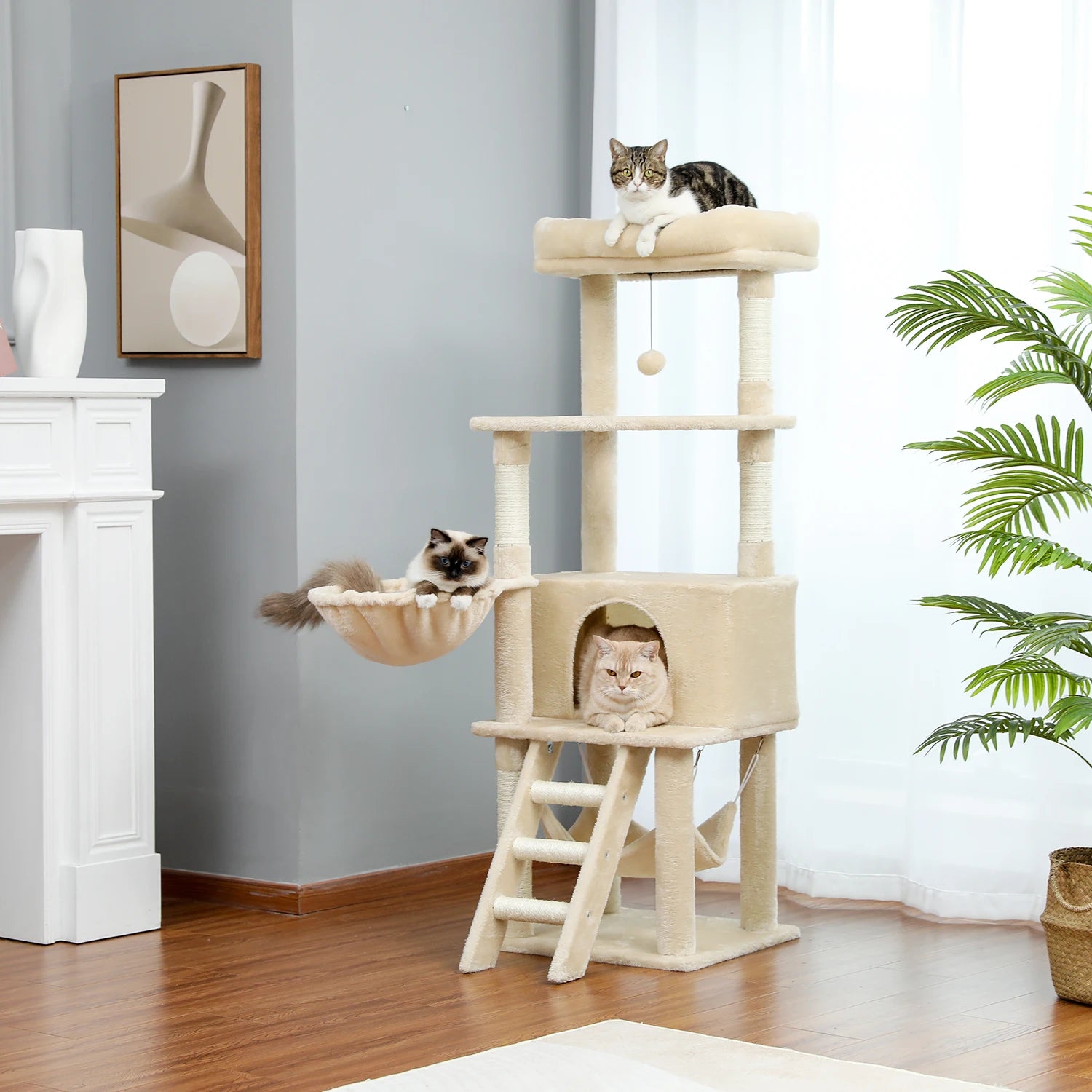 Pet Cat Tree House Condo Perch Entertainment Playground Stable Furniture for Kitten Multi-Level Tower for Large Cat Cozy Hommock