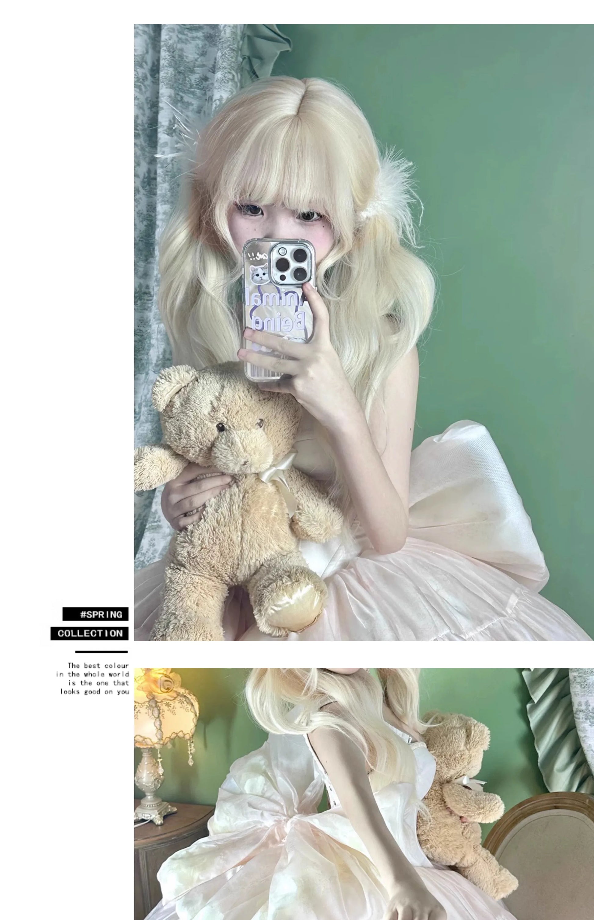 Princess Ball Gown Dress Women's Lolita Pink Suspender Dress Big Bow High Waist Slim Fit Elegant Sleeveless Strapless Dresses