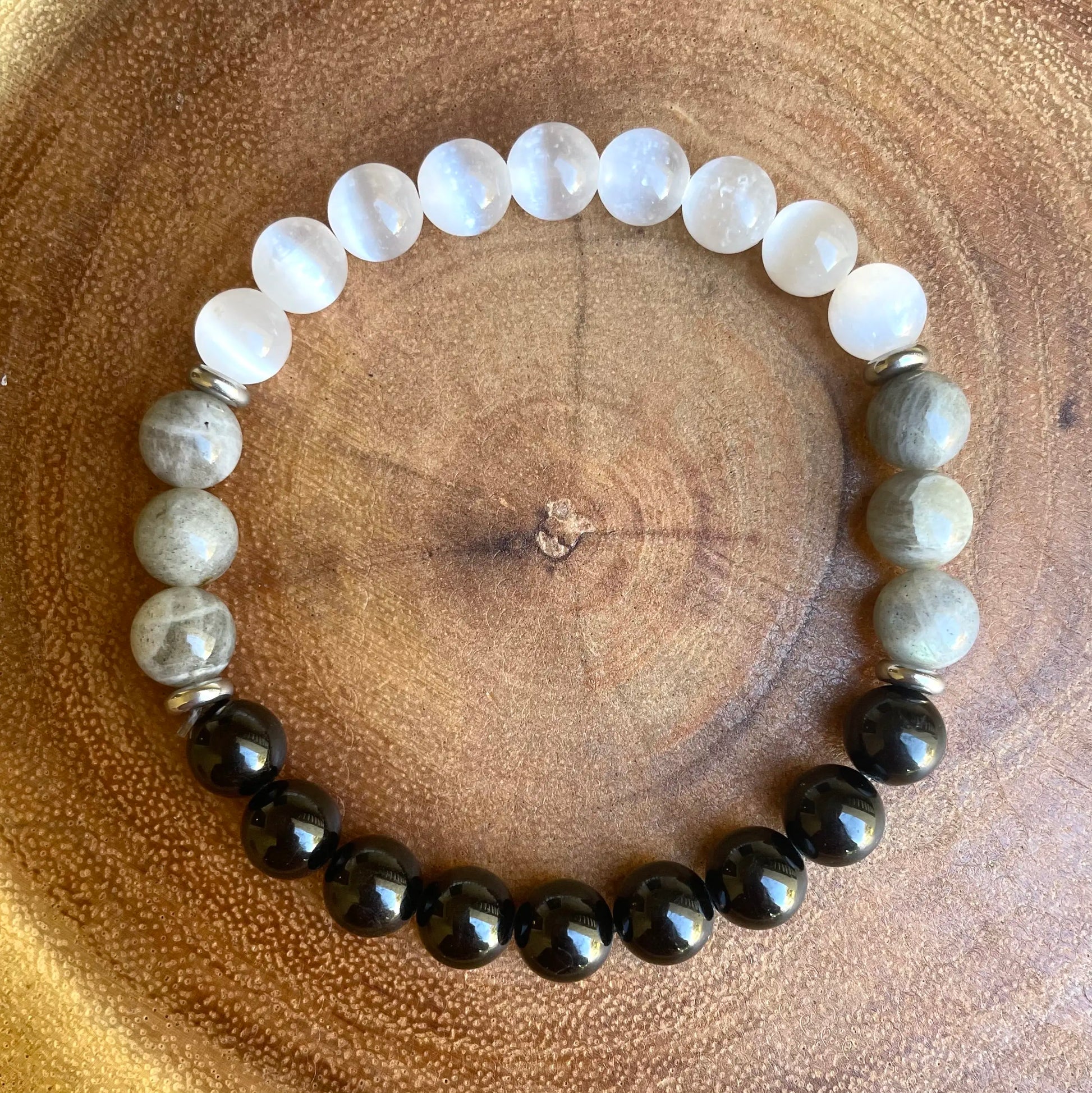 Protection Bracelet from negative energy, Tourmaline Labradorite Bracelet, Natural stone Bracelet, Good Gift for Women/Men, 1pc