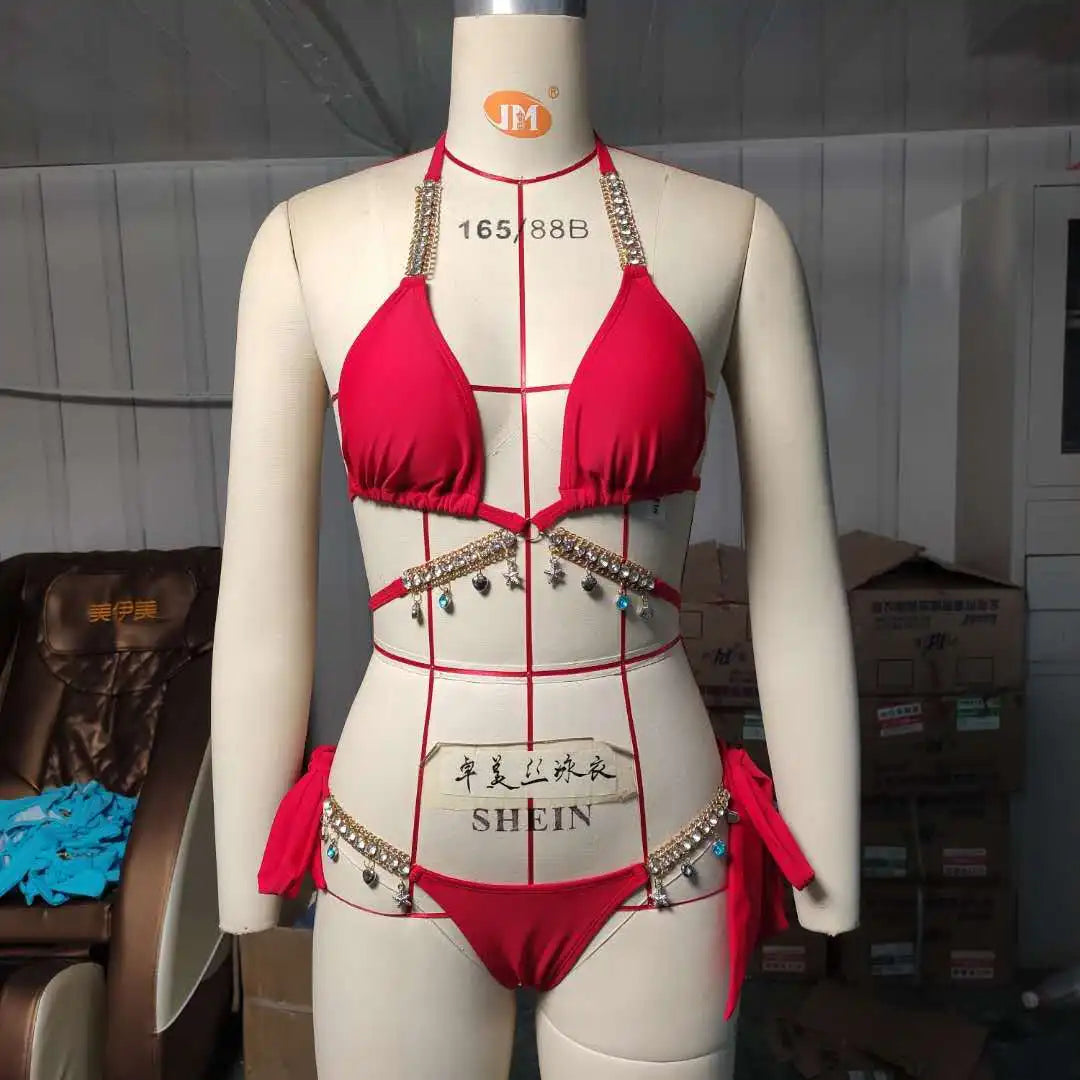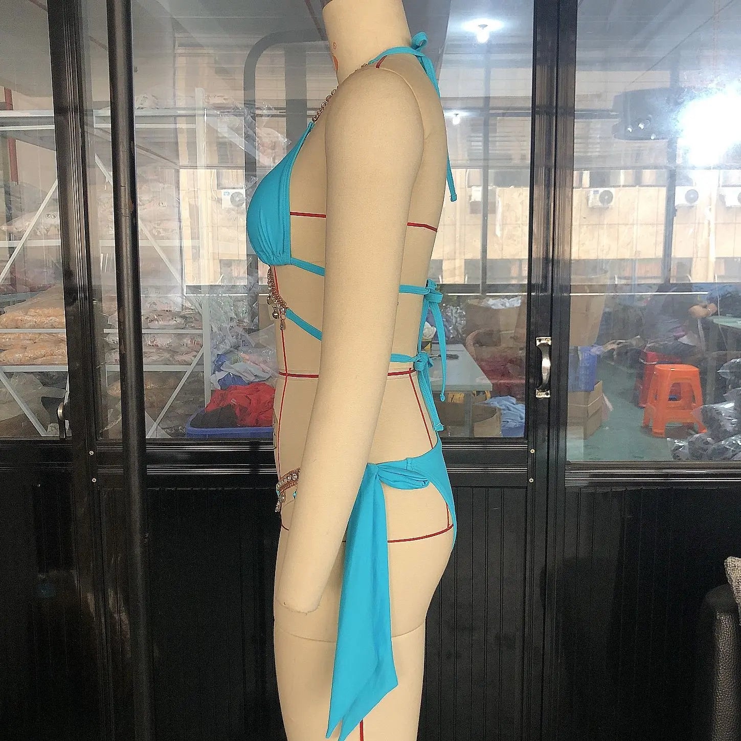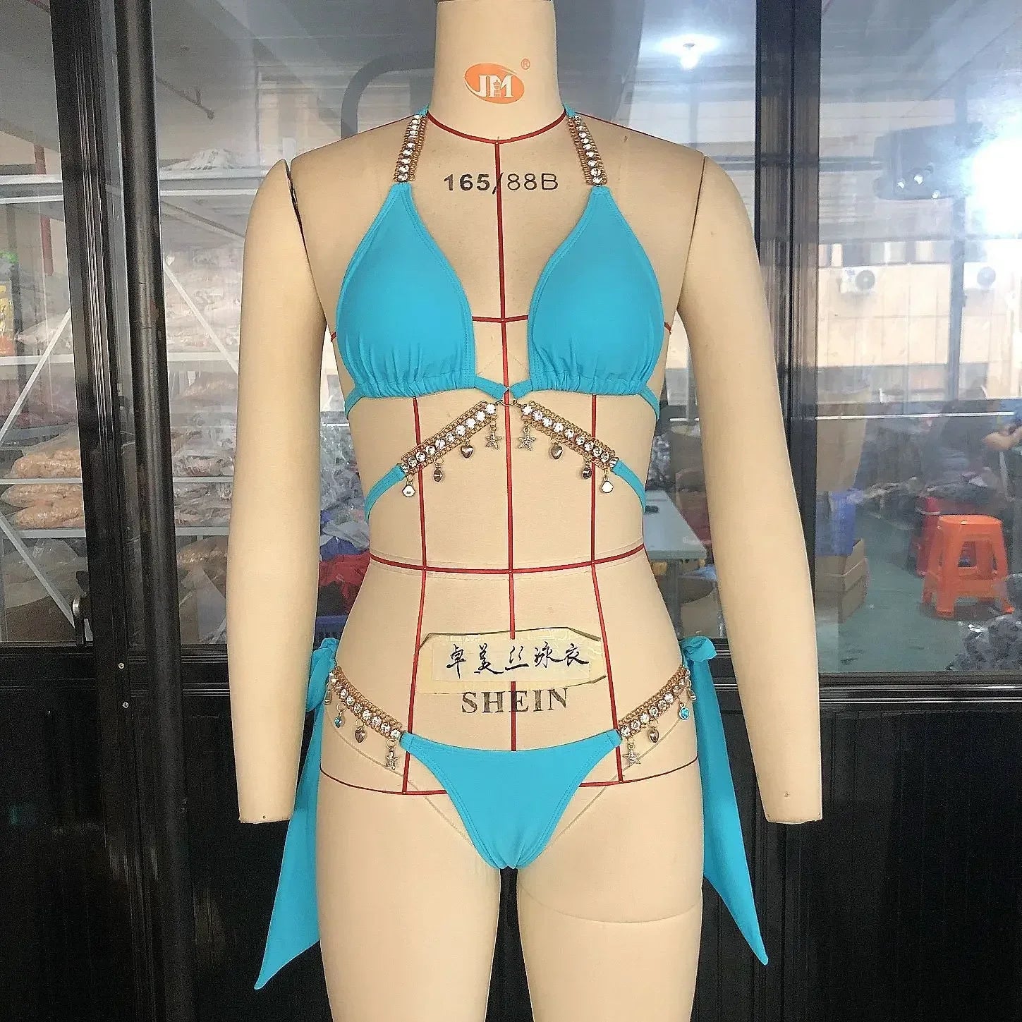 Rhinestone Bikini 2022 Women Solid Black Crystal Diamond Swimsuit Lady Luxury Metal Chain Bandage Bathing Suit Thong Swimwear