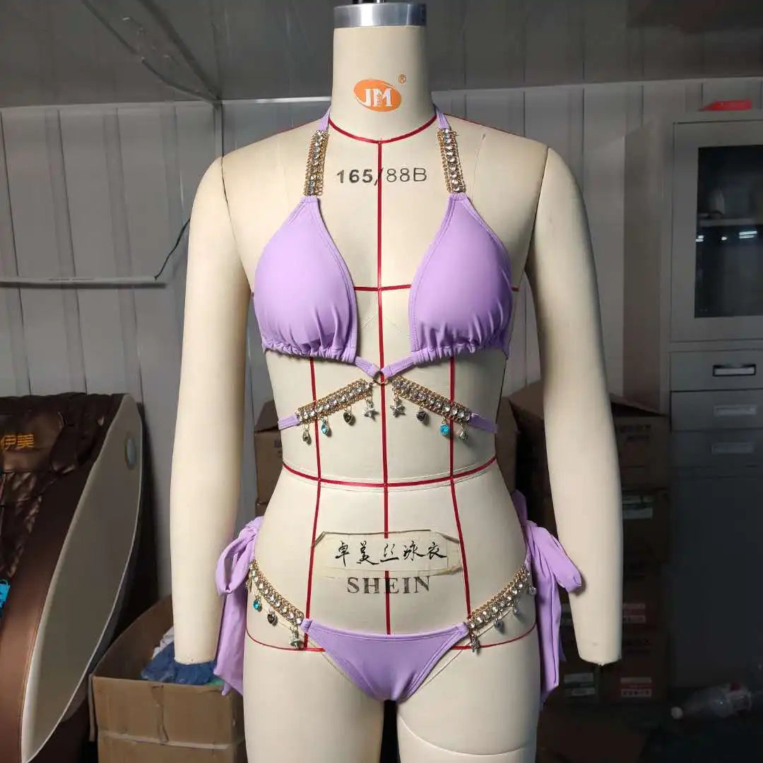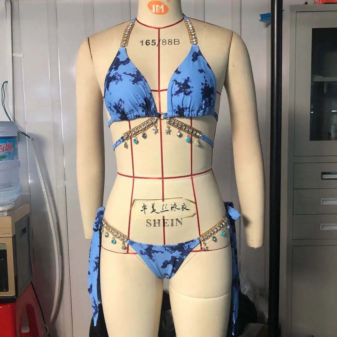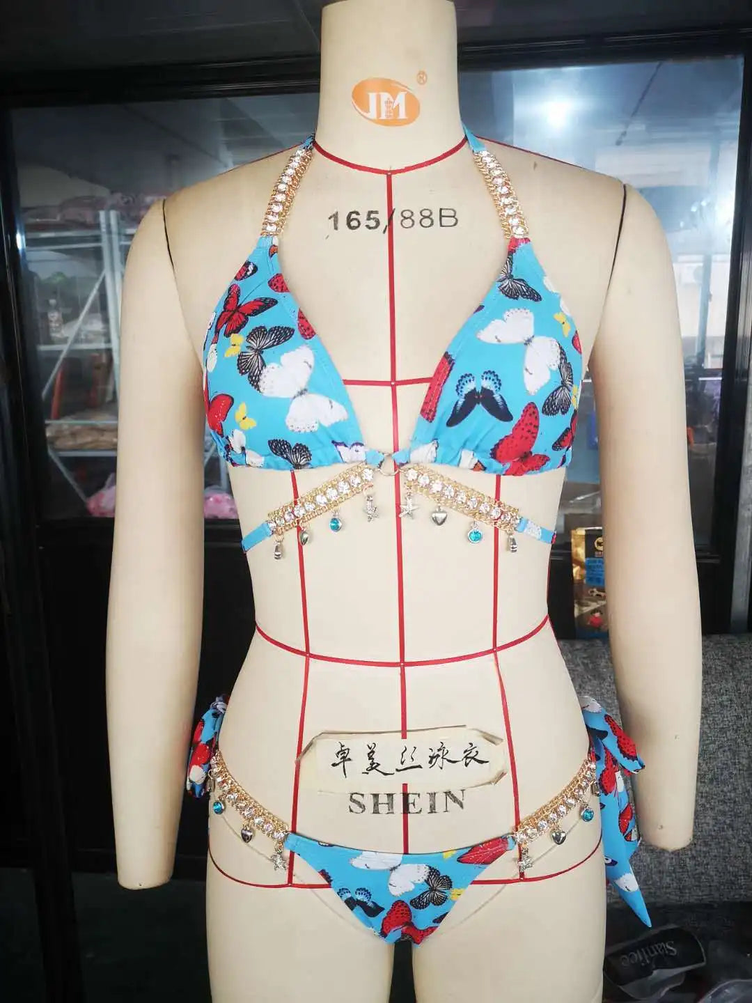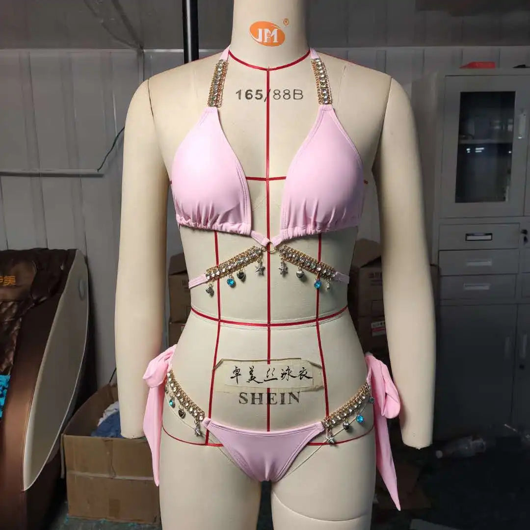 Rhinestone Bikini 2022 Women Solid Black Crystal Diamond Swimsuit Lady Luxury Metal Chain Bandage Bathing Suit Thong Swimwear