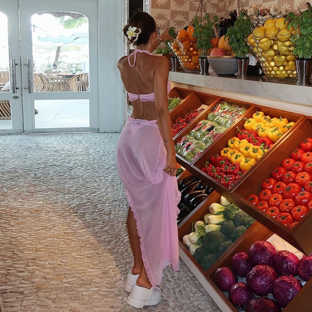 Sexy 3 pieces Bikinis 2024 Swimsuit For Women Swimwear Brazilian Bikini Set Biquini Female Swimuits Bandeau Pink Beachwear
