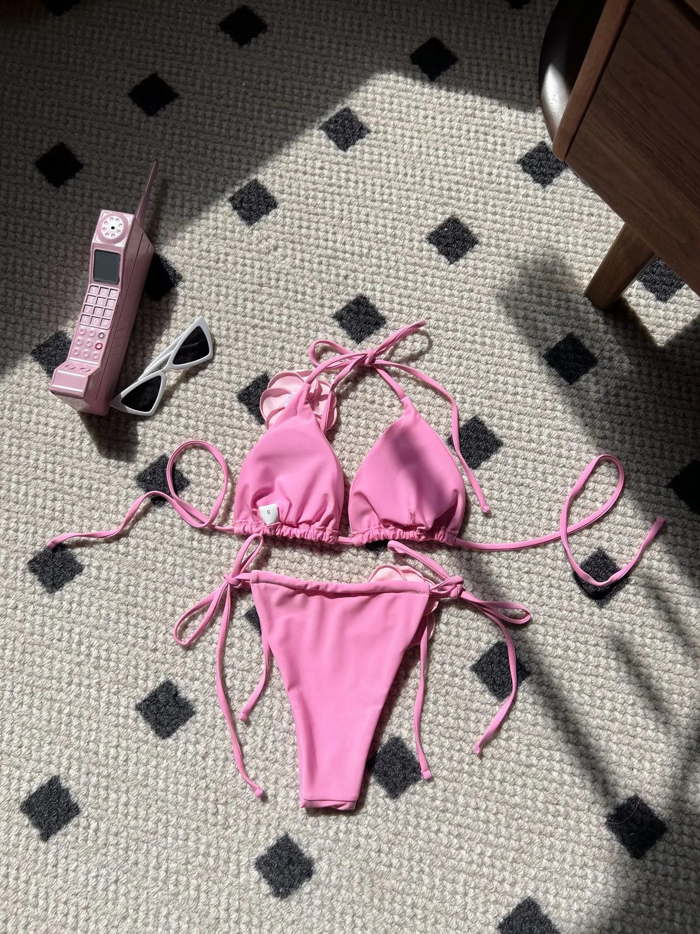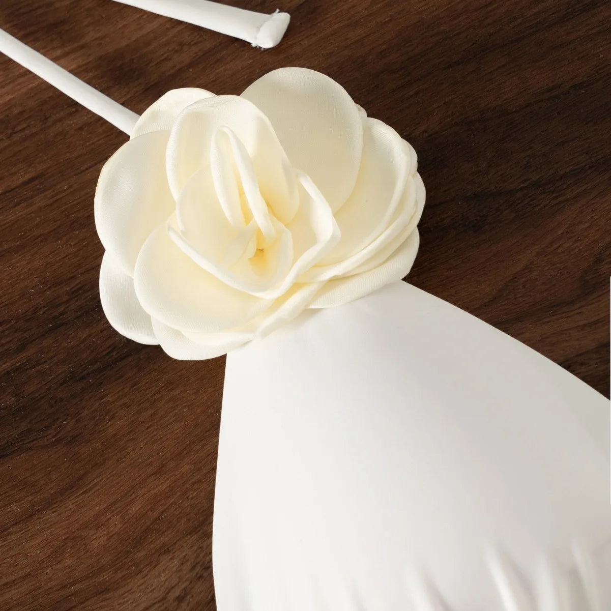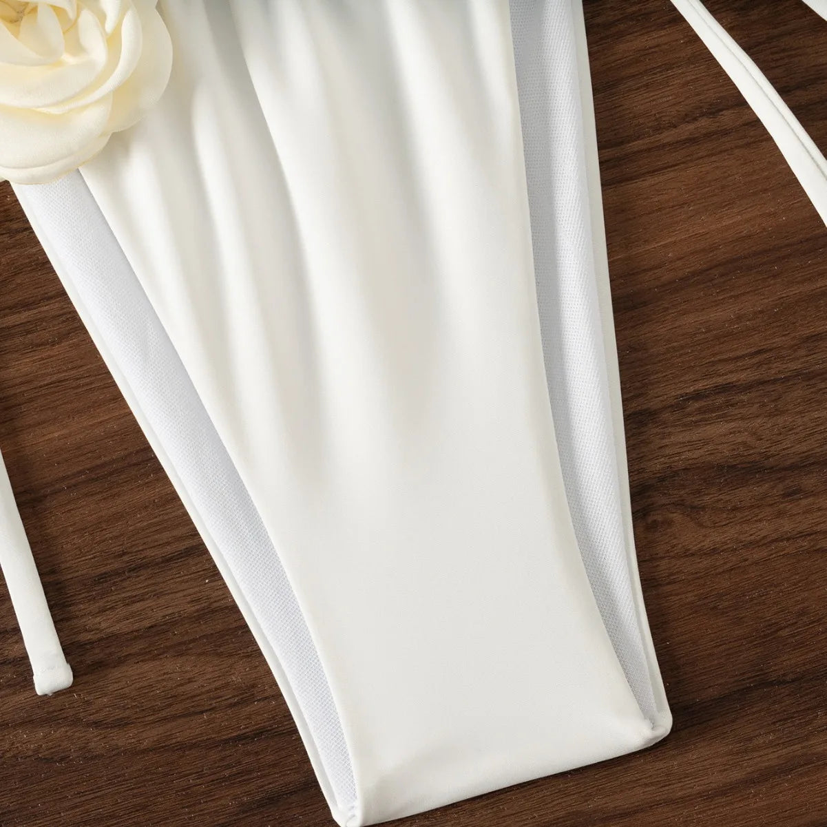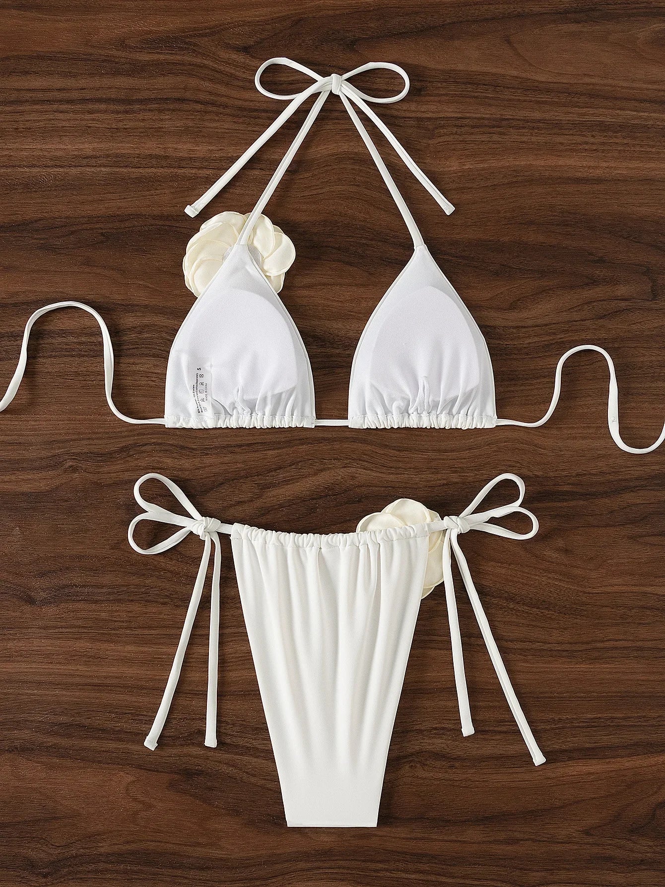 Sexy 3D Flower Black Triangle Bikinis Sets Micro Thong Swimsuit Women String Halter Bathing Suit Bikini 2025 Mujer Biquinis Swim