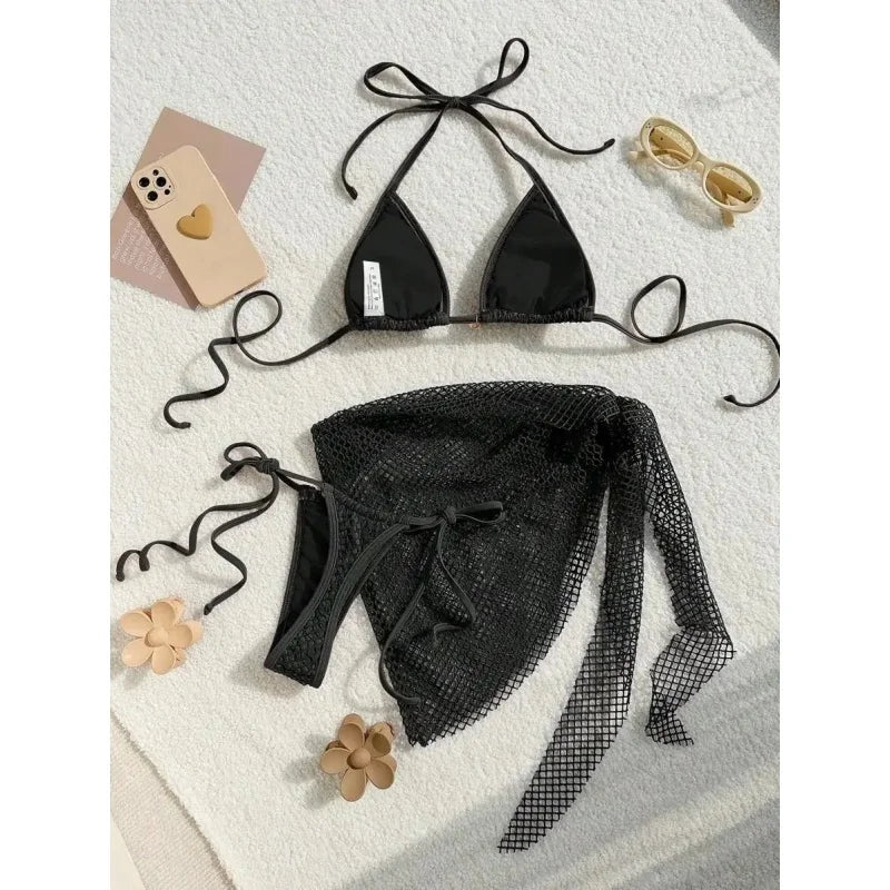 Sexy Bikinis Swimsuits Women 3 Piece Spliced Triangle Halter Backless Bikini Set Bandage Cover Up 2025 New Vacation Beachwear
