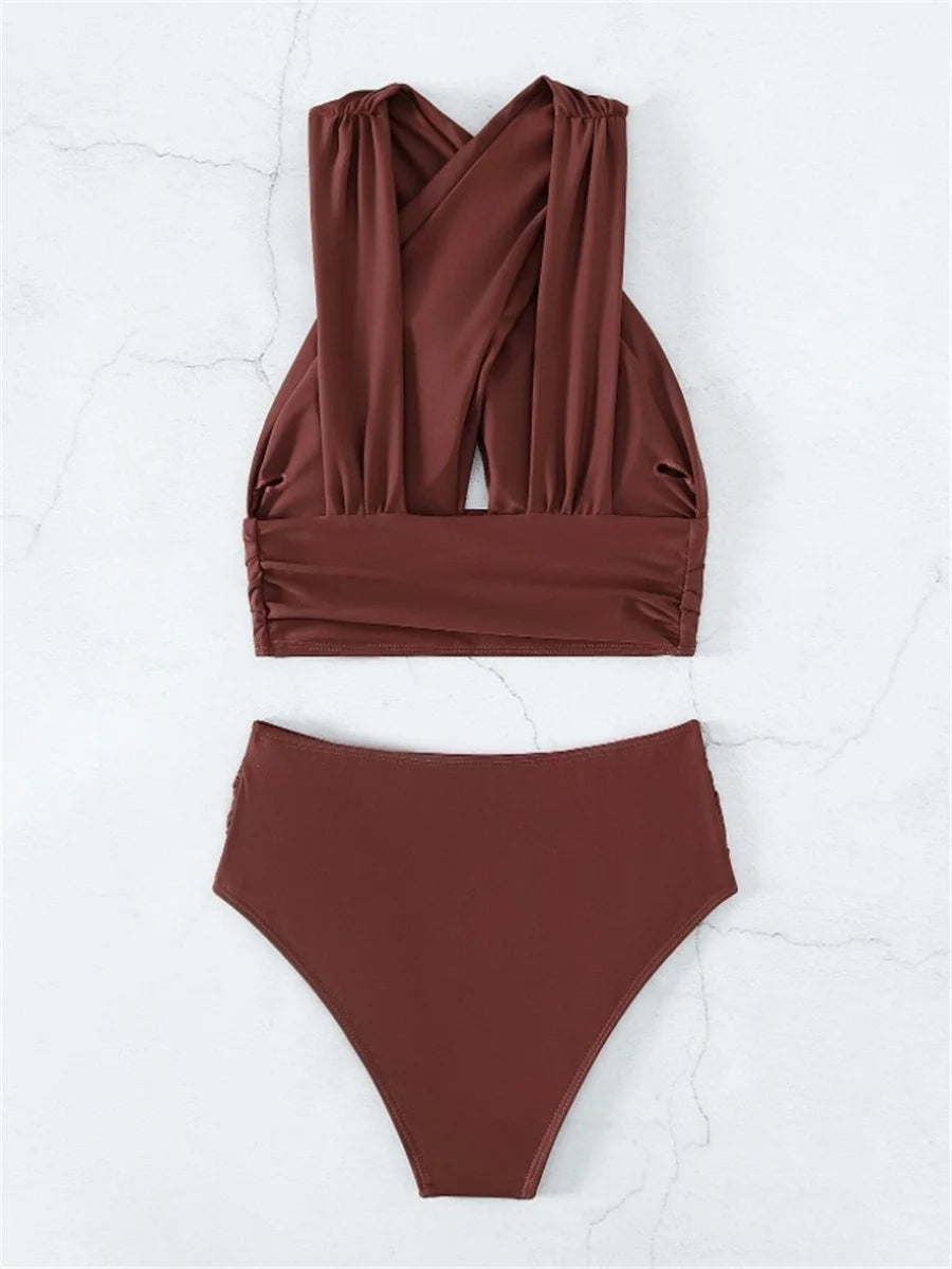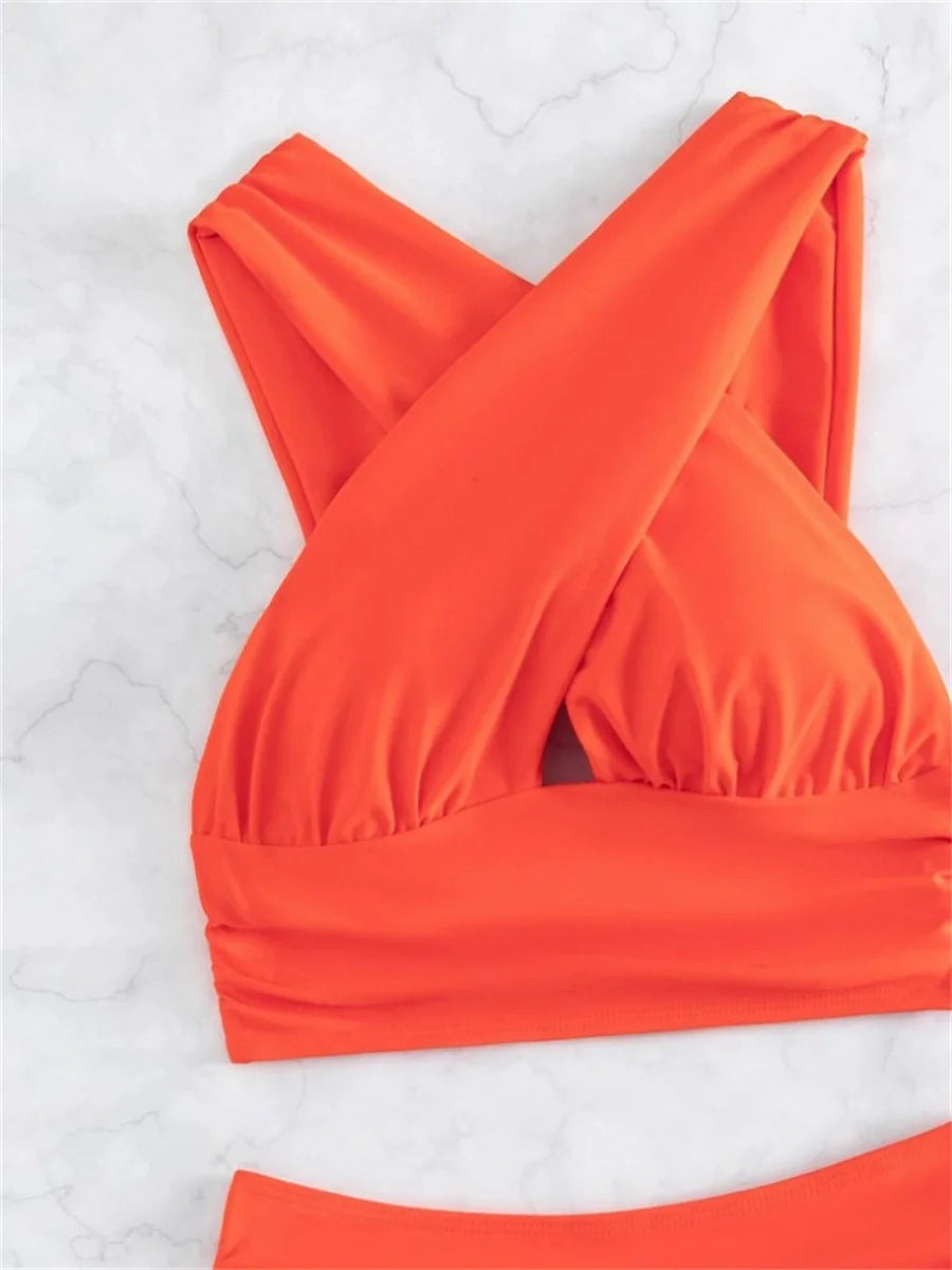 Sexy Black Blue Bikinis Sets Women Halter Cross Hollow Out Push Up High Waist Swimsuit 2025 Bathing Suit Two Piece Swimwear