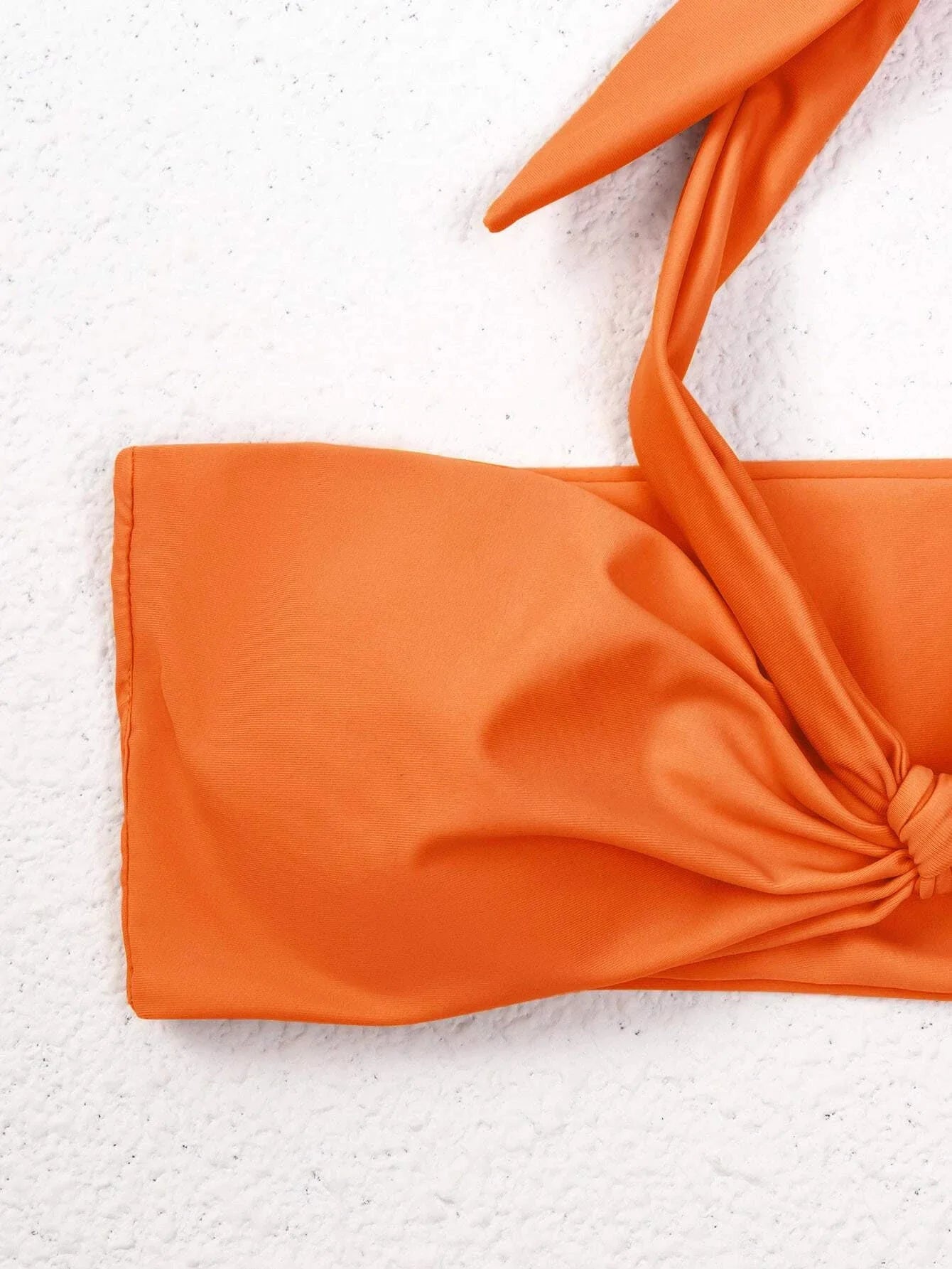 Sexy Front Bow Bikinis Sets Women Orange Blue Bandeau Push Up Two Piece Swimsuit 2025 Cut Out Bathing Suit High Waist Swimwear