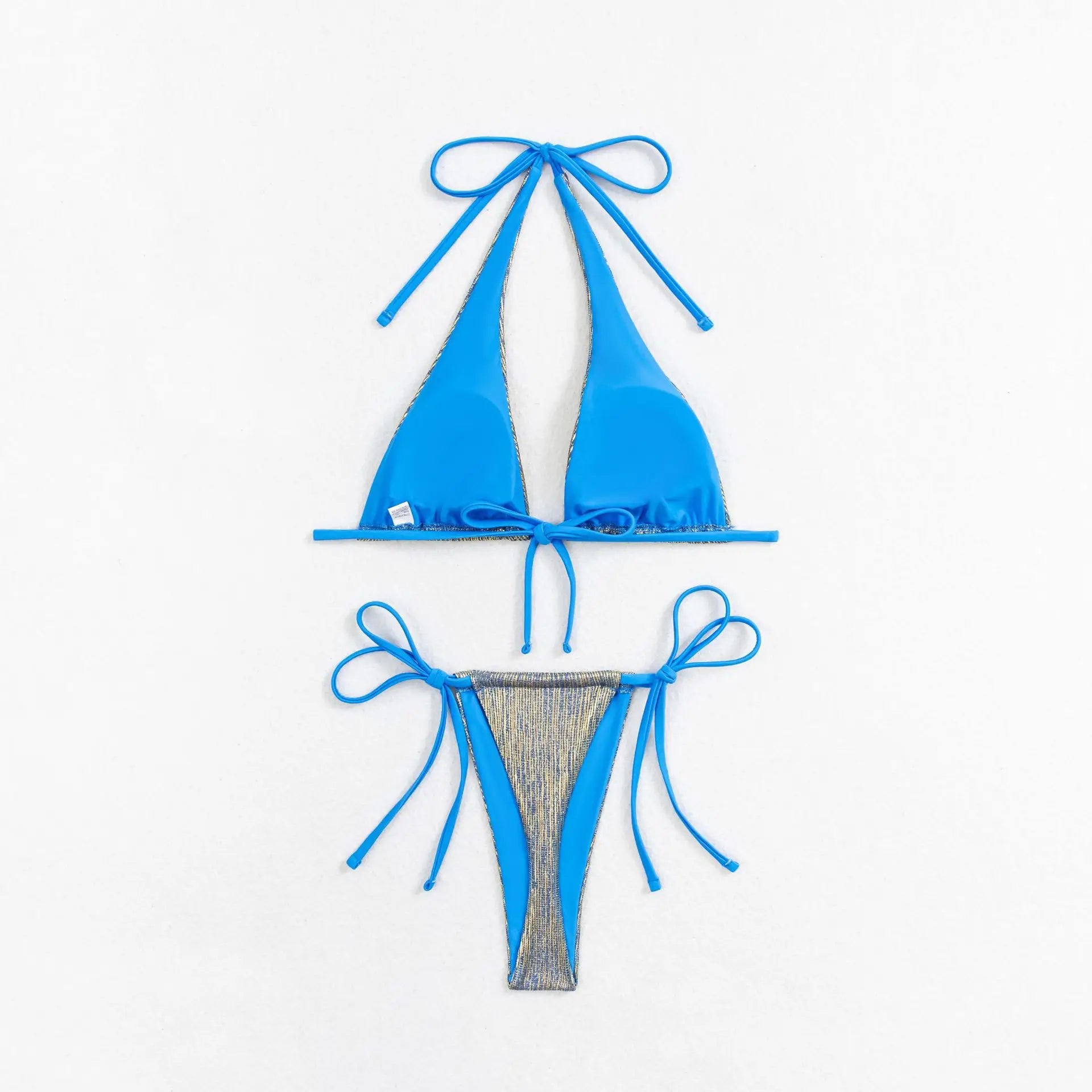Sexy Golden String Bikini 2024 Women Swimsuit Female Swimwear Thong Halter Bikinis Set Brazilian Beach Bathing Suit Biquini