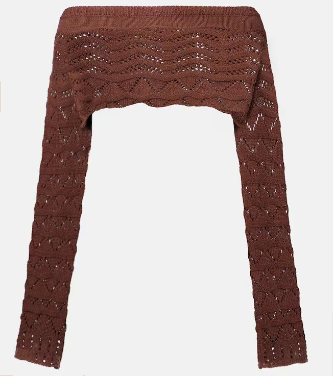 Sexy Knit One-neck Long Sleeve Short Top Drawstring Half Skirt Beach Two-piece 2025 Women Summer Swimsuit Cover Up Chic Set K172