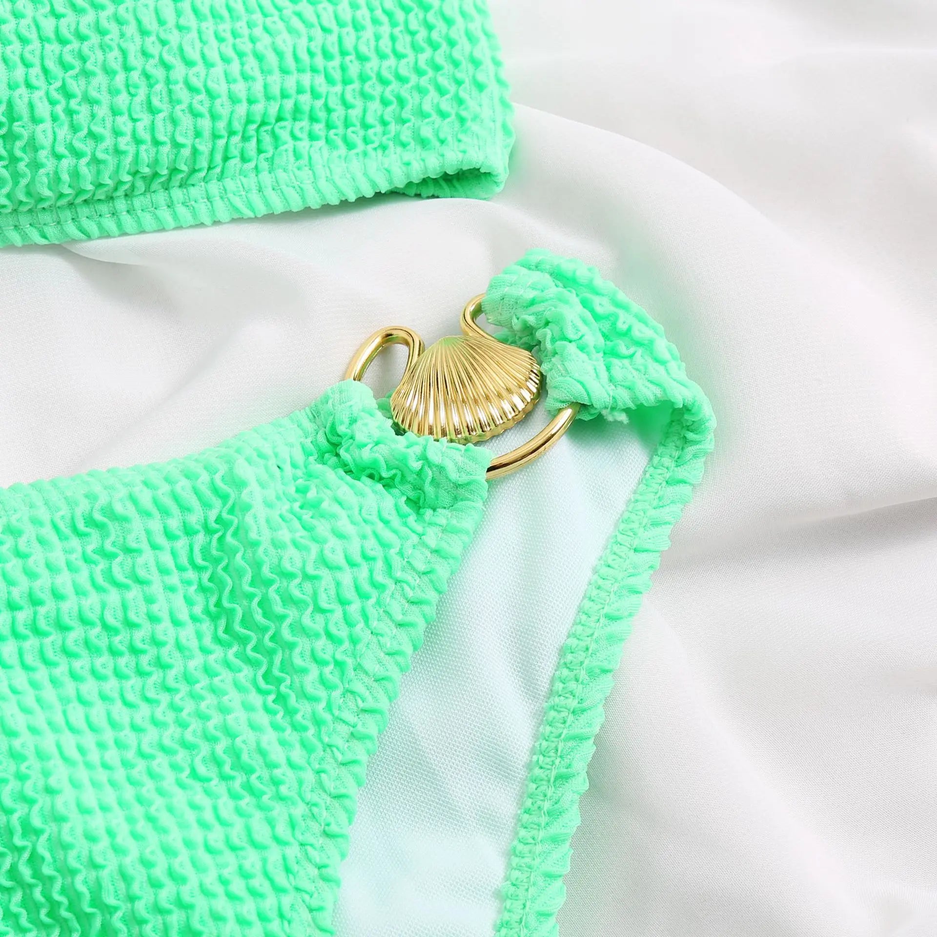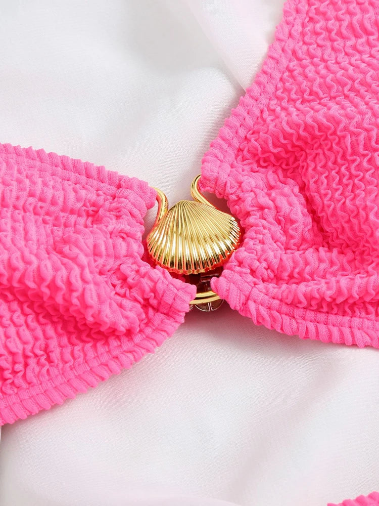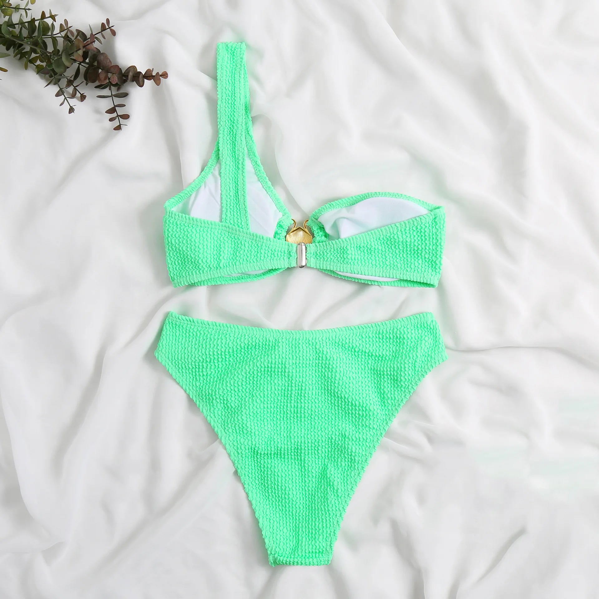 Sexy One Shoulder Shell Bikini High Waist Swimwear 2023 Textured Swimsuit Women Bathing Suits Metal Ring Two-piece Bikinis Set