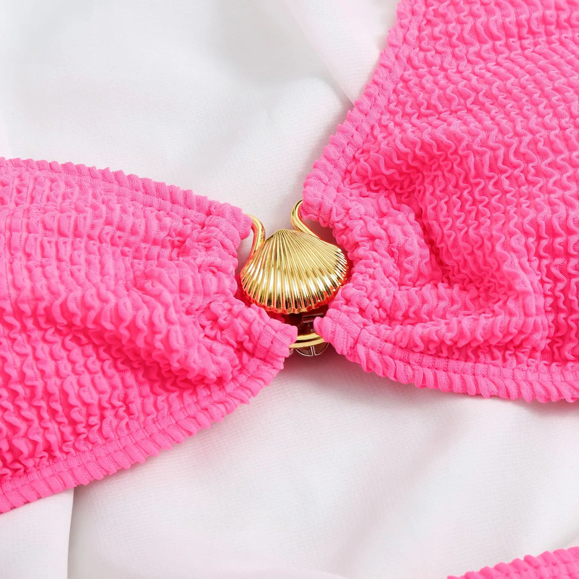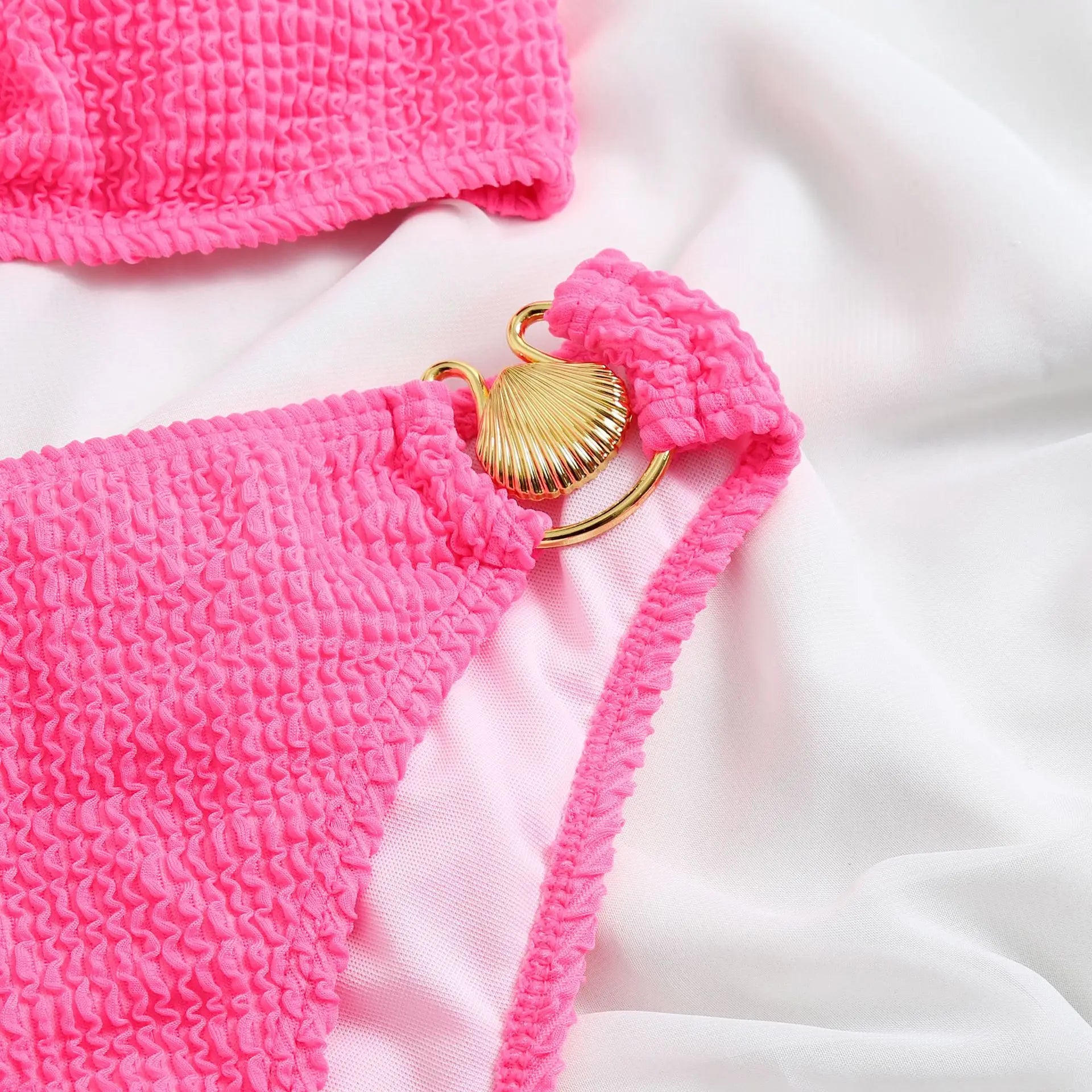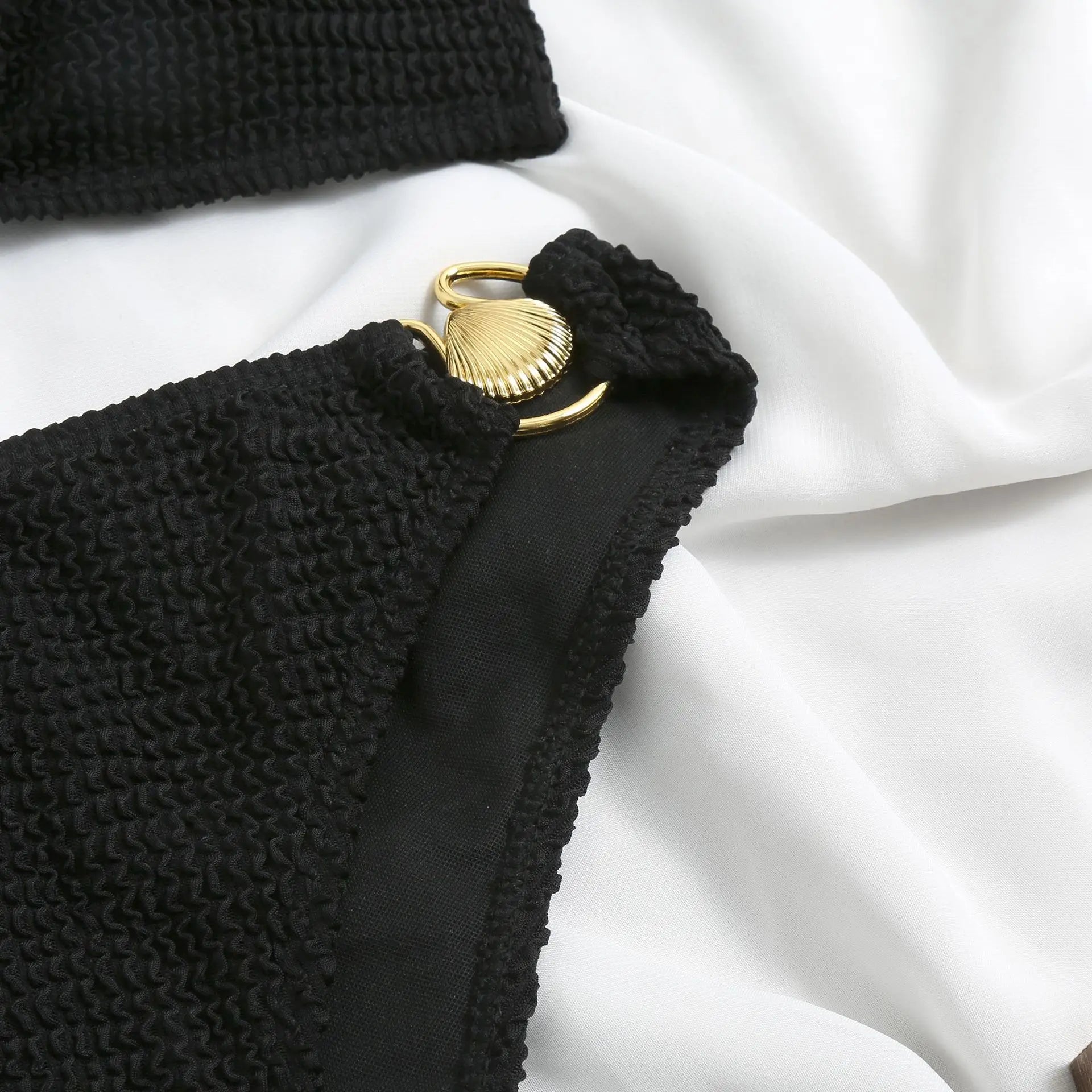 Sexy One Shoulder Shell Bikini High Waist Swimwear 2023 Textured Swimsuit Women Bathing Suits Metal Ring Two-piece Bikinis Set
