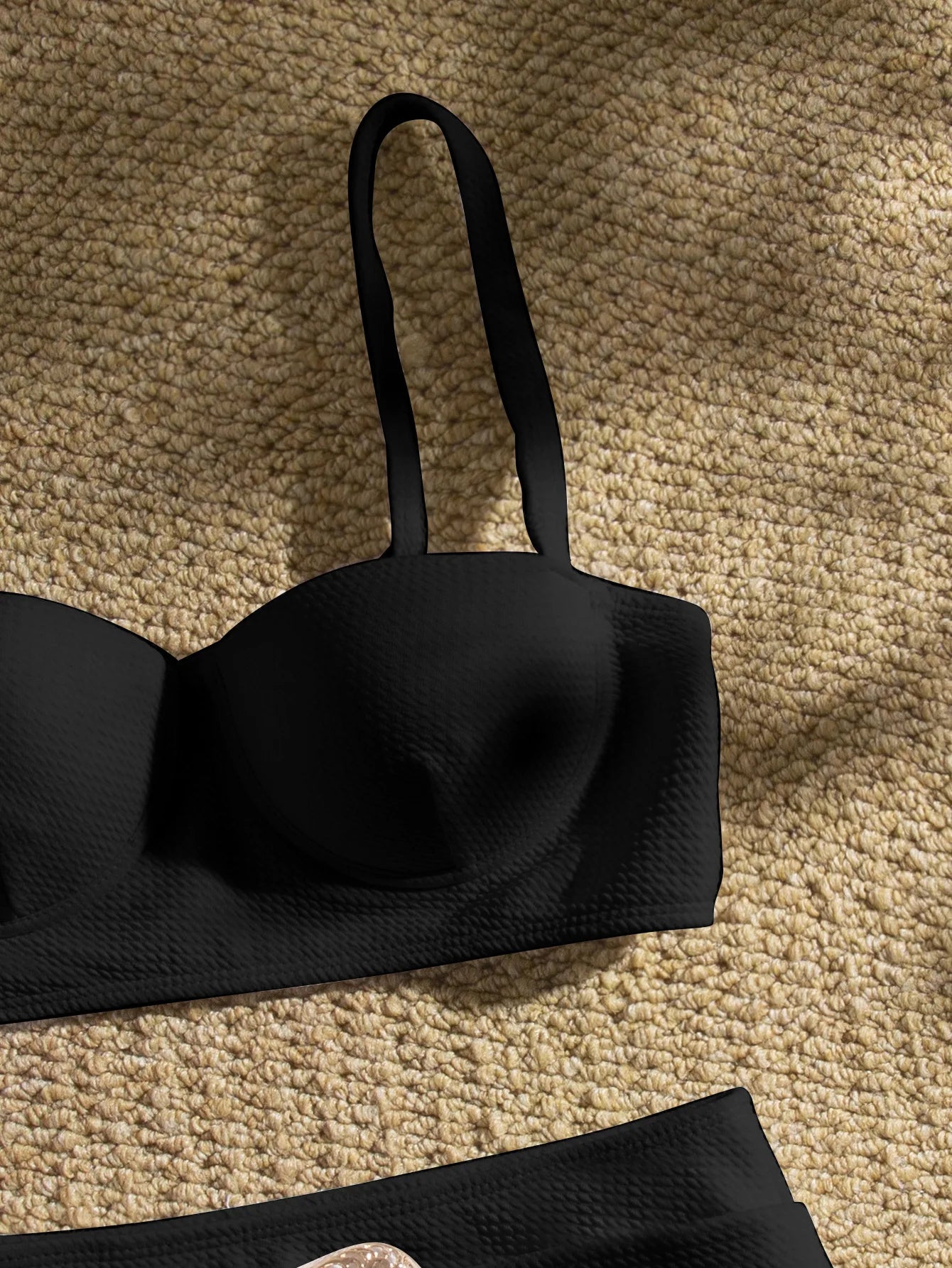 Sexy Rhinestone Belt High Waist Bikinis Set 2024 Women Solid White Black Push Up Underwire Swimsuit Buckle Bathing Suit Swimwear