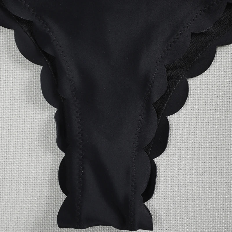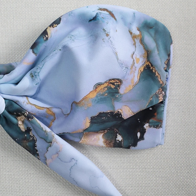 Sexy Scalloped Marble Print Bikini Women Bandeau Swimwear Female Swimsuit Two-pieces Bikini set Knotted Bather Bathing Suit Swim