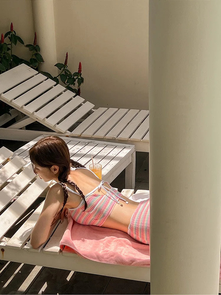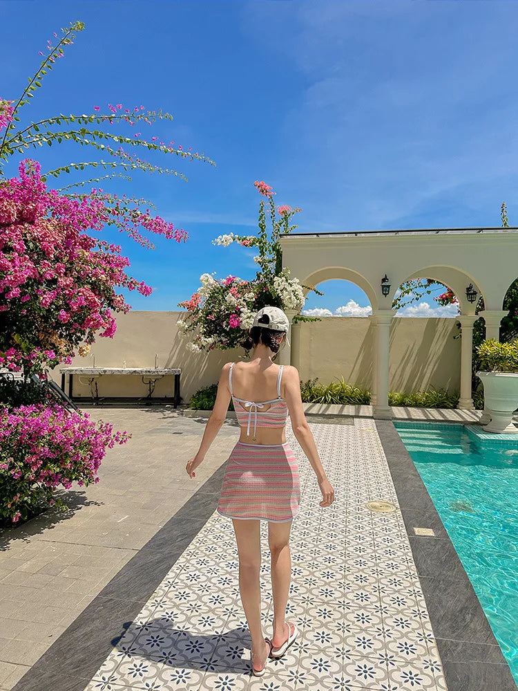 Sexy Stripe Bandeau Swimwear High Waist Bikini 2024 Women 3 Pack Swimsuits with Skirt Bathing Suit Korean Bikinis Set Beach Wear