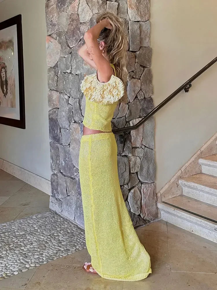 Sexy Transparent Sleeveless Shiny Camisole Tank Top Long Dress Two Piece Set 2025 Fashion Elastic Waist Wrap Hip Knitted Set K68