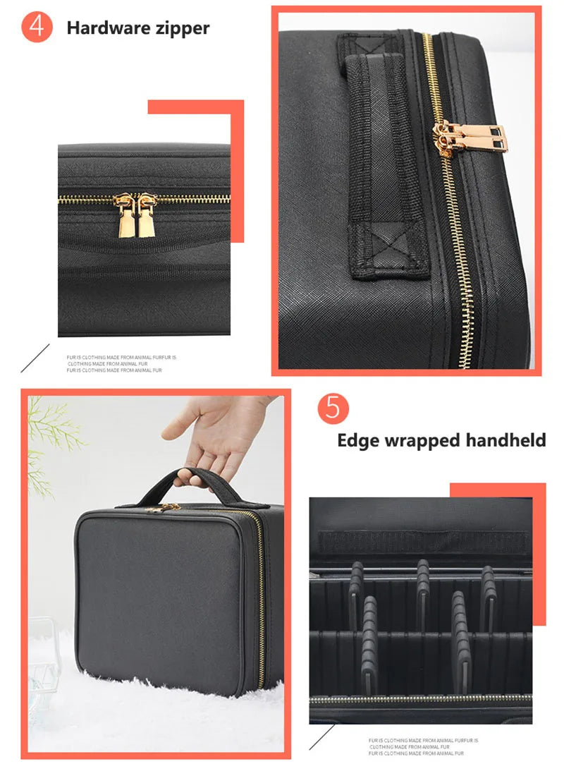 Smart LED Cosmetic Case With Mirror Travel Makeup Bag Large Capacity Female Beautician Skincare Product Makeup Case For Women
