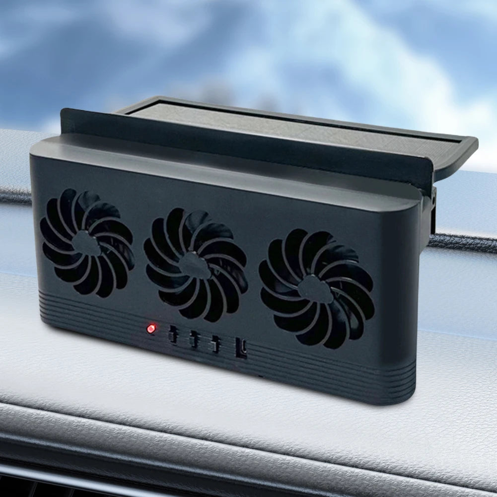 Solar Powered Car Radiator Cooling Fan with 3 Air Outlets Car Window Air Vent Fan USB Powered Auto Ventilation Fan for All Cars