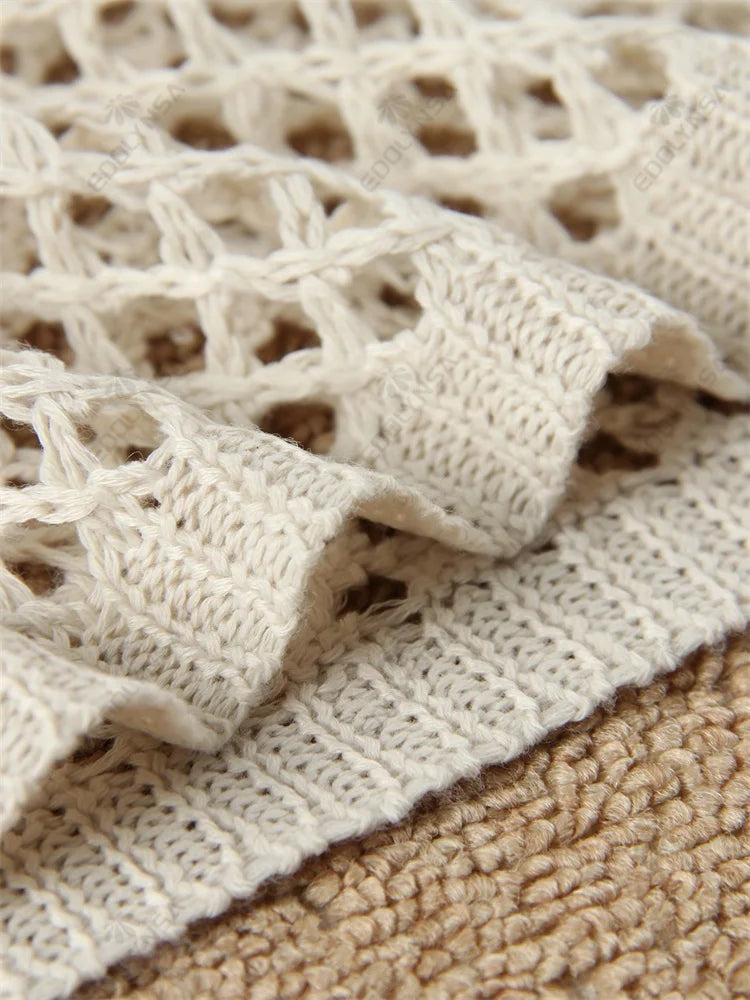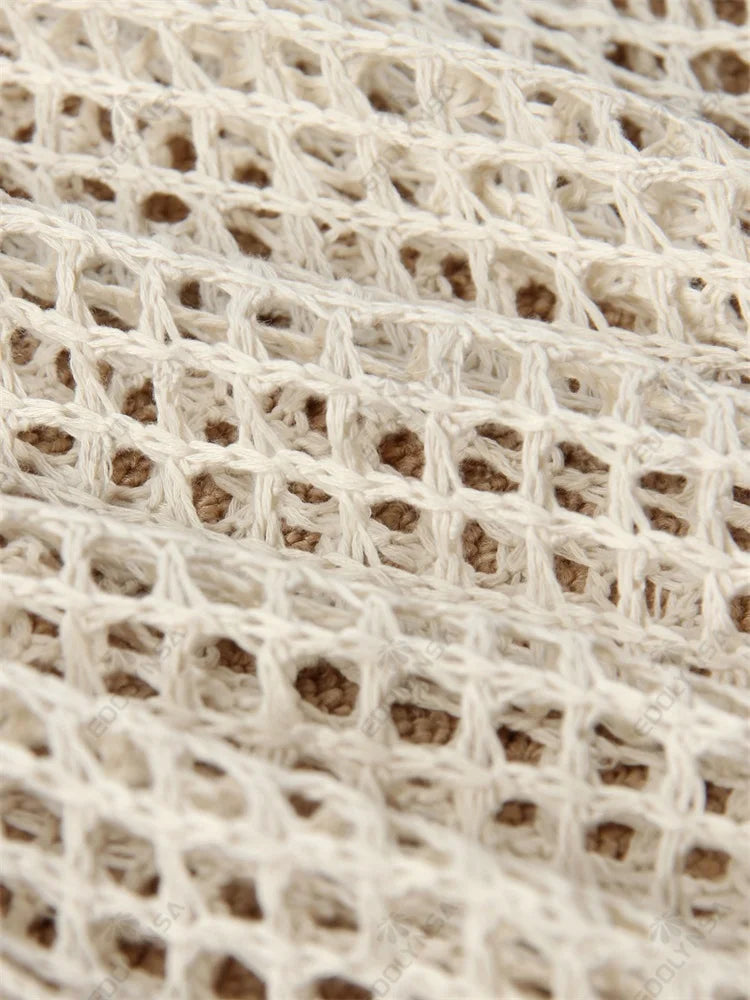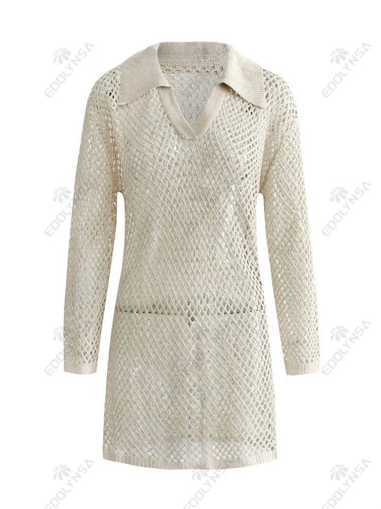 Solid Colour Beach Knit Mini Dress Women's Summer Sexy Hollow Out Long Sleeve Swimsuit Cover Up Boho Holiday Loose Beachwear K17