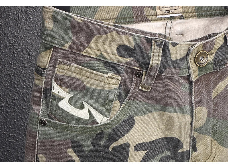 Streetwear Fashion Men Jeans High Quality Stretch Slim Fit Camo Trousers Embroidery Patch Designer Hip Hop Denim Pants Hombre