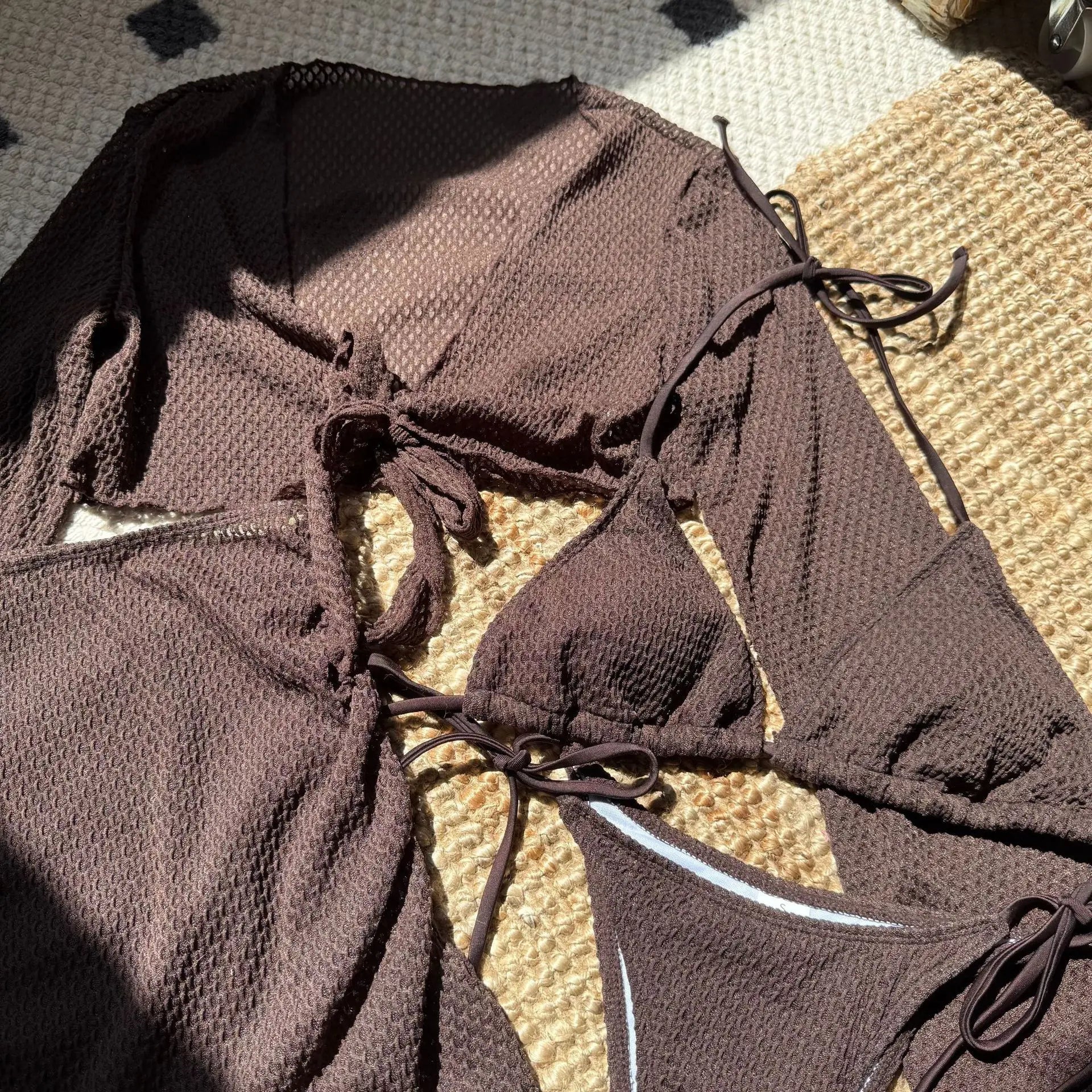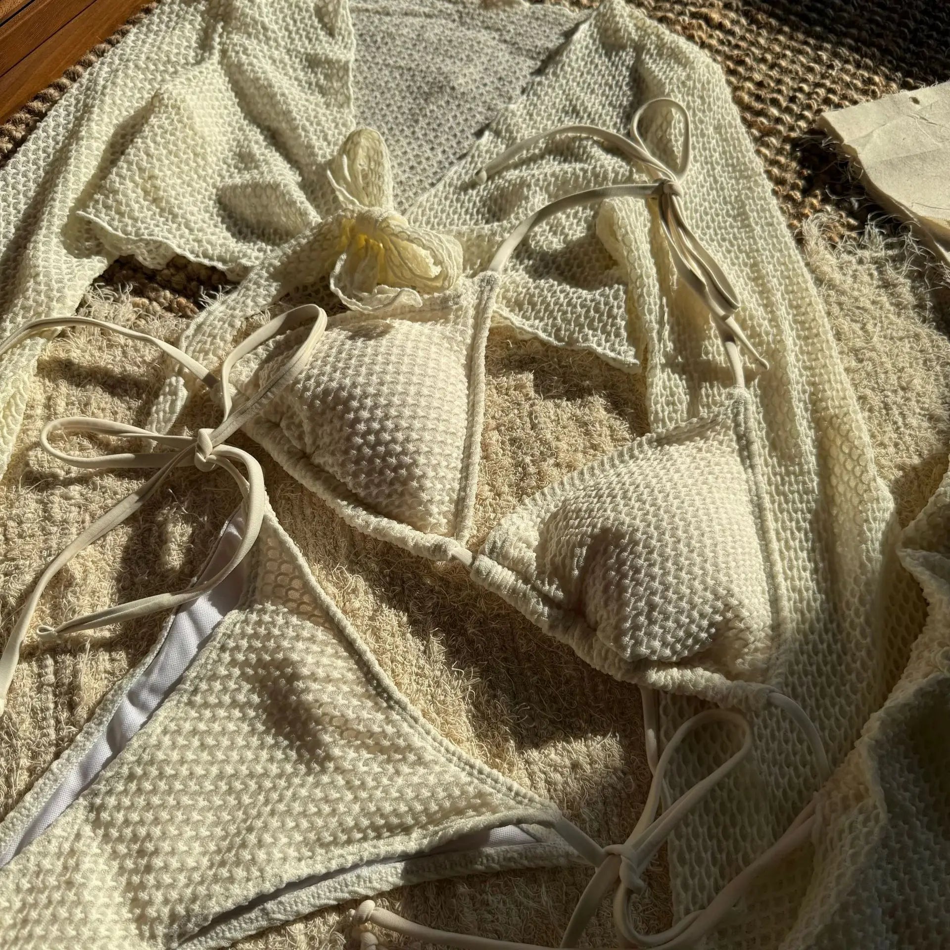 Summer Holiday 4 Piece Bikini Set 2025 Women Sexy White Long Sleeve Cover Up and Skirt Swimsuit Beach Bathing Suit Pool Swimwear
