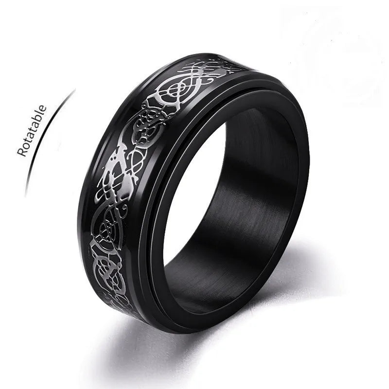 Viking Dragon Stainless Steel Anti Stress Rings Men Fidget Spinner Free Shipping Anti Anxiety Relaxing Rotating Ring Anillo