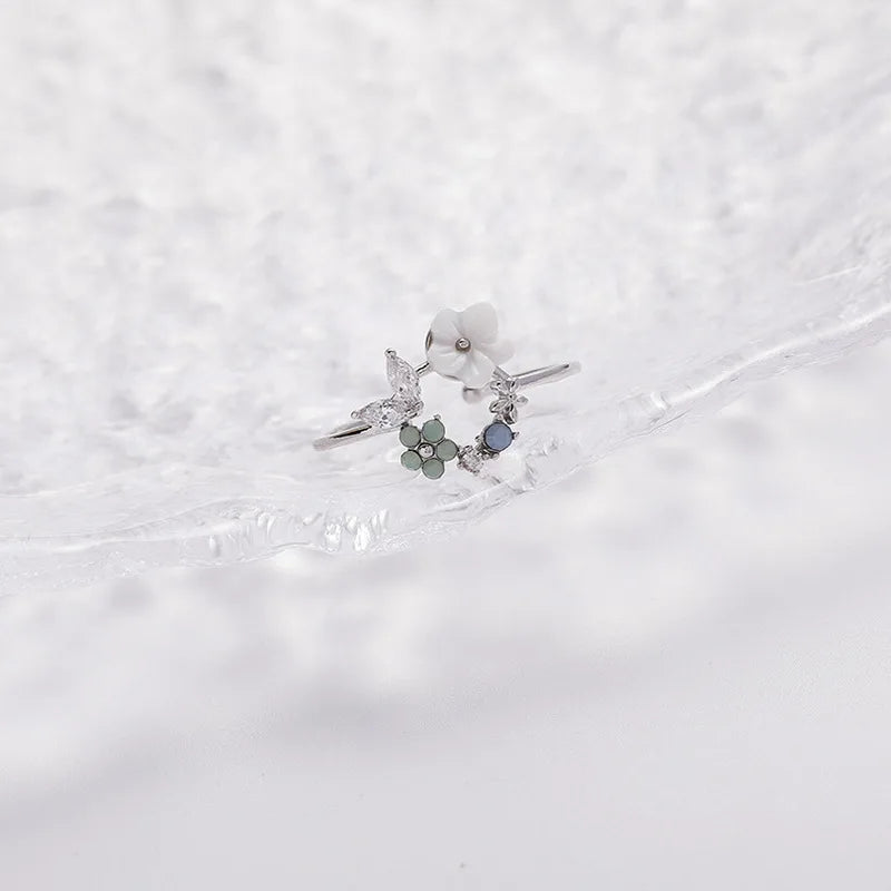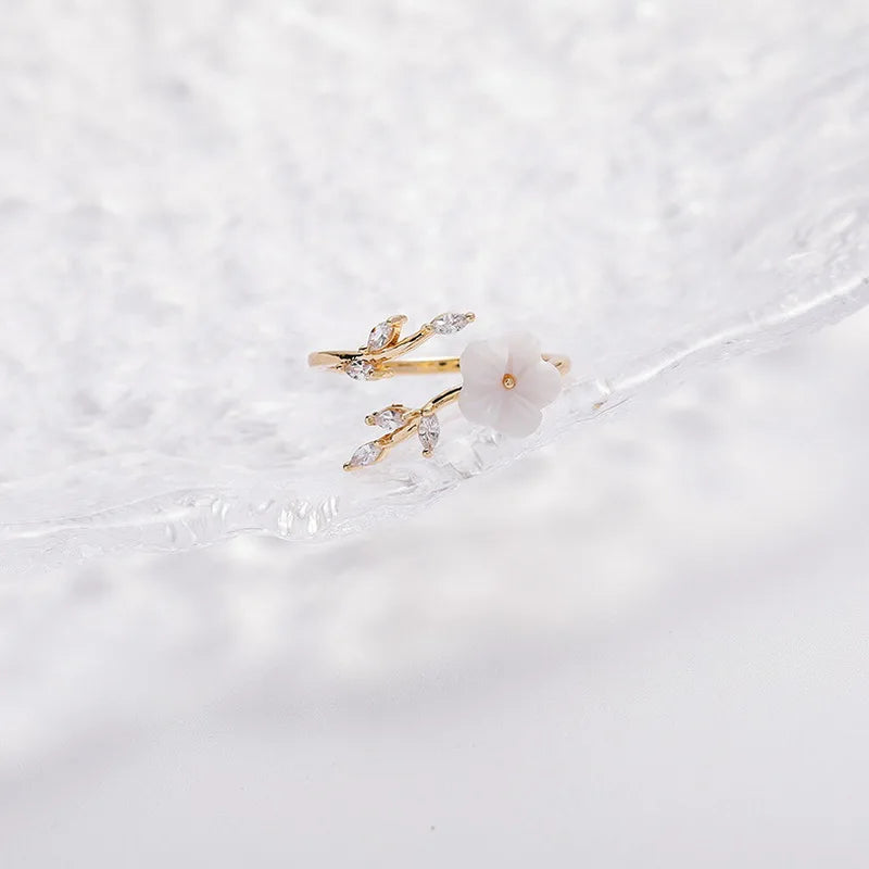 Vintage Rose Flower Rings For Women Korean Style Adjustable Sakura Princess Finger Ring Bride Wedding Engagement Party Jewelry