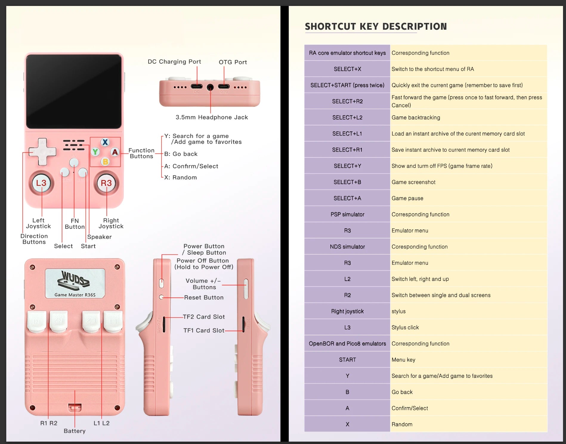 WUDS R36S Portable Handheld Game Controller with 3.5" HD Screen, Rechargeable Battery - Perfect Christmas Gift for Gamers