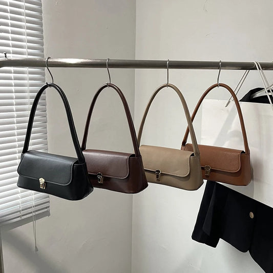 Women Retro Tote Bag Trendy Vintage Underarm Bag Portable Casual PU Leather Solid Color Simple Mountaineering Bag Christmas Gift